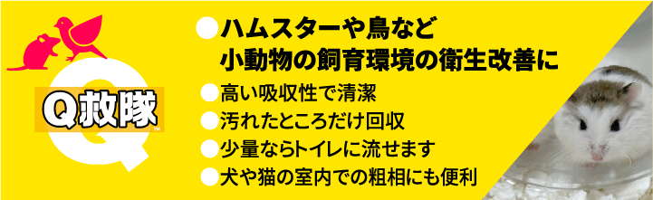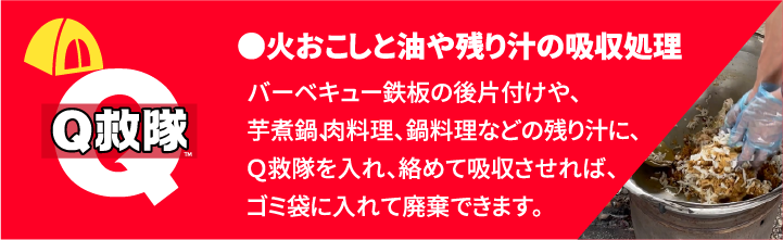 Qマークの「Q救隊」は医療向け製品の製造過程で生まれる油や水分を素早く吸収する紙をチップ状に加工した環境に優しい商品です。